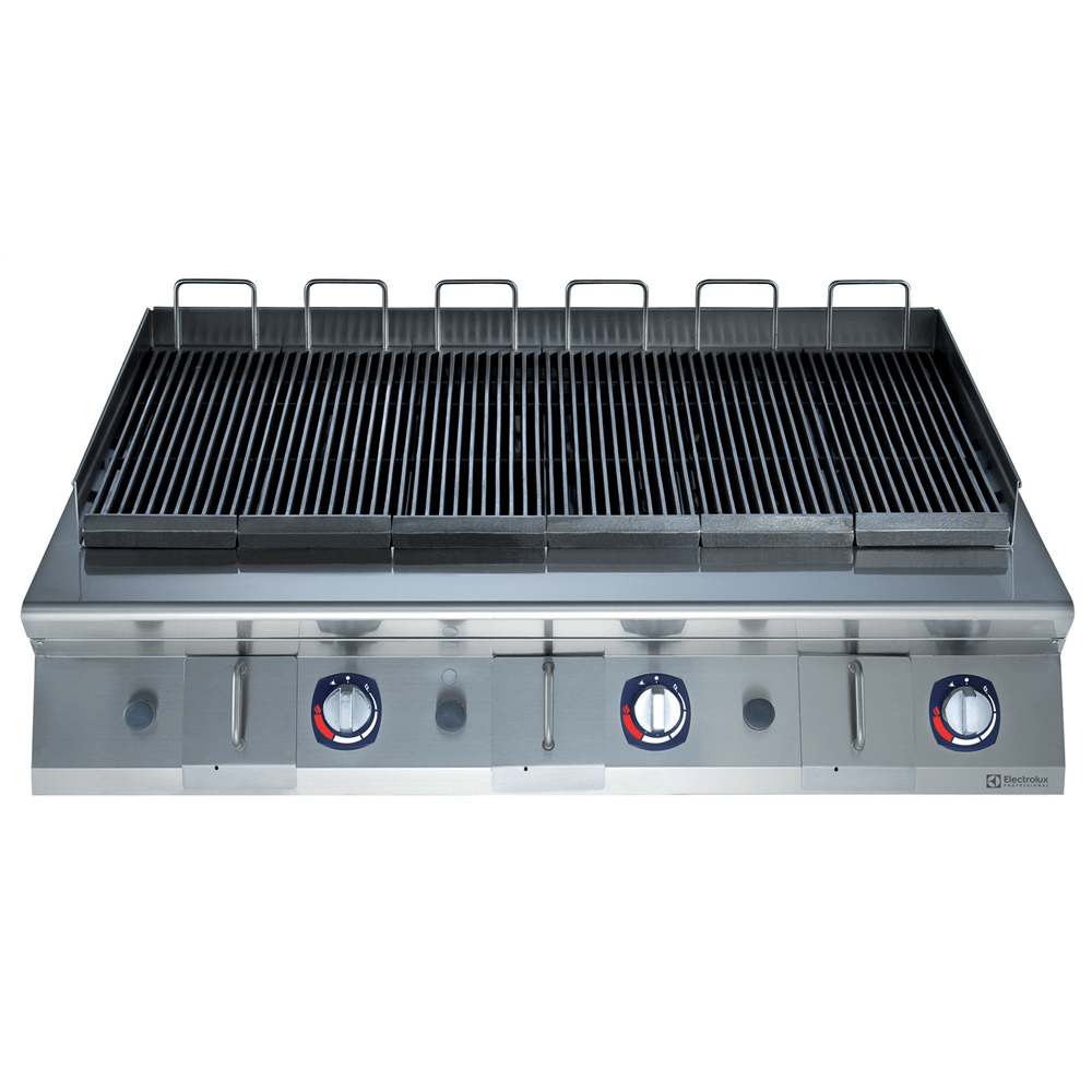 Til brug med gas. Højeffektive 11 kW brændere i rustfrit stål med selvstabiliserende flamme. Madlavningsriste i emaljeret støbejern, let aftagelige til rengøring. Rustfri stål AISI 441 deflektorskærme under strålerne forhindrer tilstopning af brænderen (patent under behandling). Inkluderer drypbakke til opsamling af fedt og olie. Side- og bagpaneler i AISI 304 rustfrit stål med Scotch Brite finish. Ekstra stærk arbejdsplade i kraftig 2 mm AISI 304 rustfrit stål. Hjørnerne er vinkelret for at tillade en plan montering mellem enhederne.