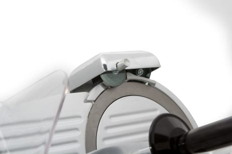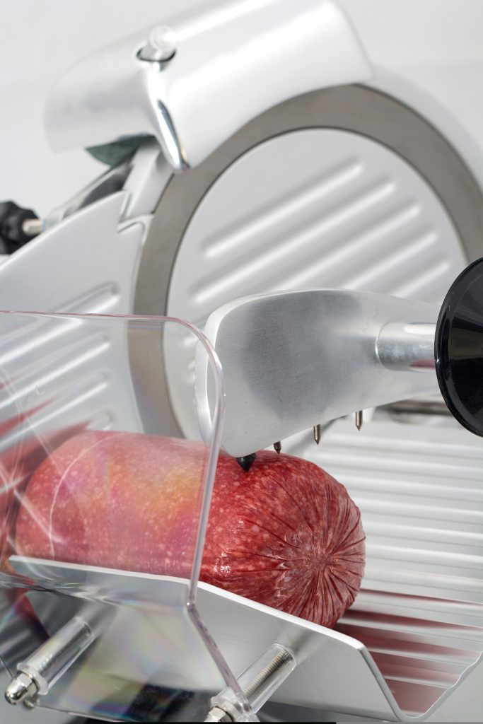 Beregnet til professionel kommerciel brug. Konstruktionen er lavet af aluminium med skridsikre fødder.. Luftkølet motor med beskyttelse mod overophedning. Motor med ekstra kraft til skæring af hårdt kød. Monteret med knivbeskyttelse og indbygget slibemaskine.