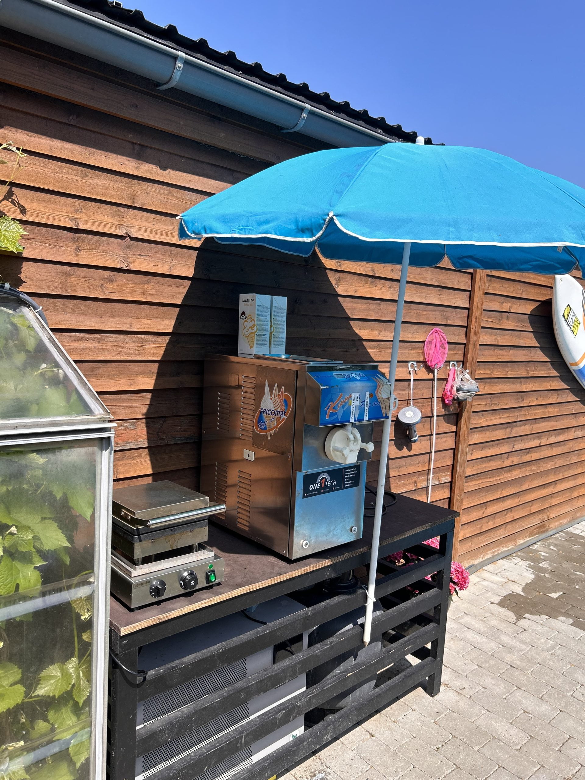 Lille fin softicemaskine med tryk knap der selv dimensionere portionen. Max 15 20 gæster